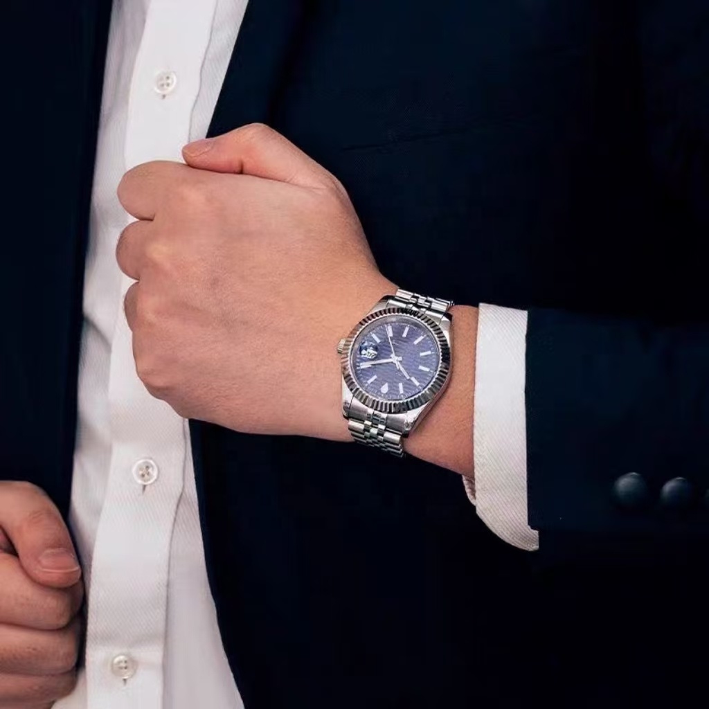 Luxury Men’s Sport Business Mechanical Watches Custom Logo Stainless Steel Band Water Resistant Luminous on Bezel lobinni