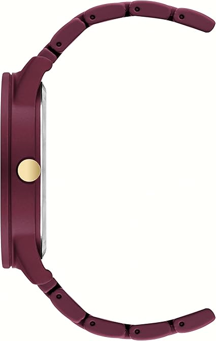 - Matte burgundy rubberized adjustable link bracelet; fold over clasp with double push-button safety