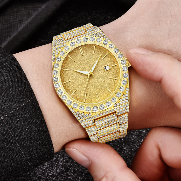 Top Quality Mens No Logo Luxury Stainless Steel Gold Diamond Quartz Watch